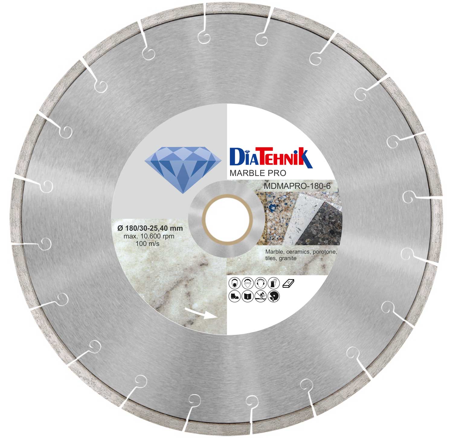 Model conceput pentru tăiere ceramică, dar și granit și marmură.