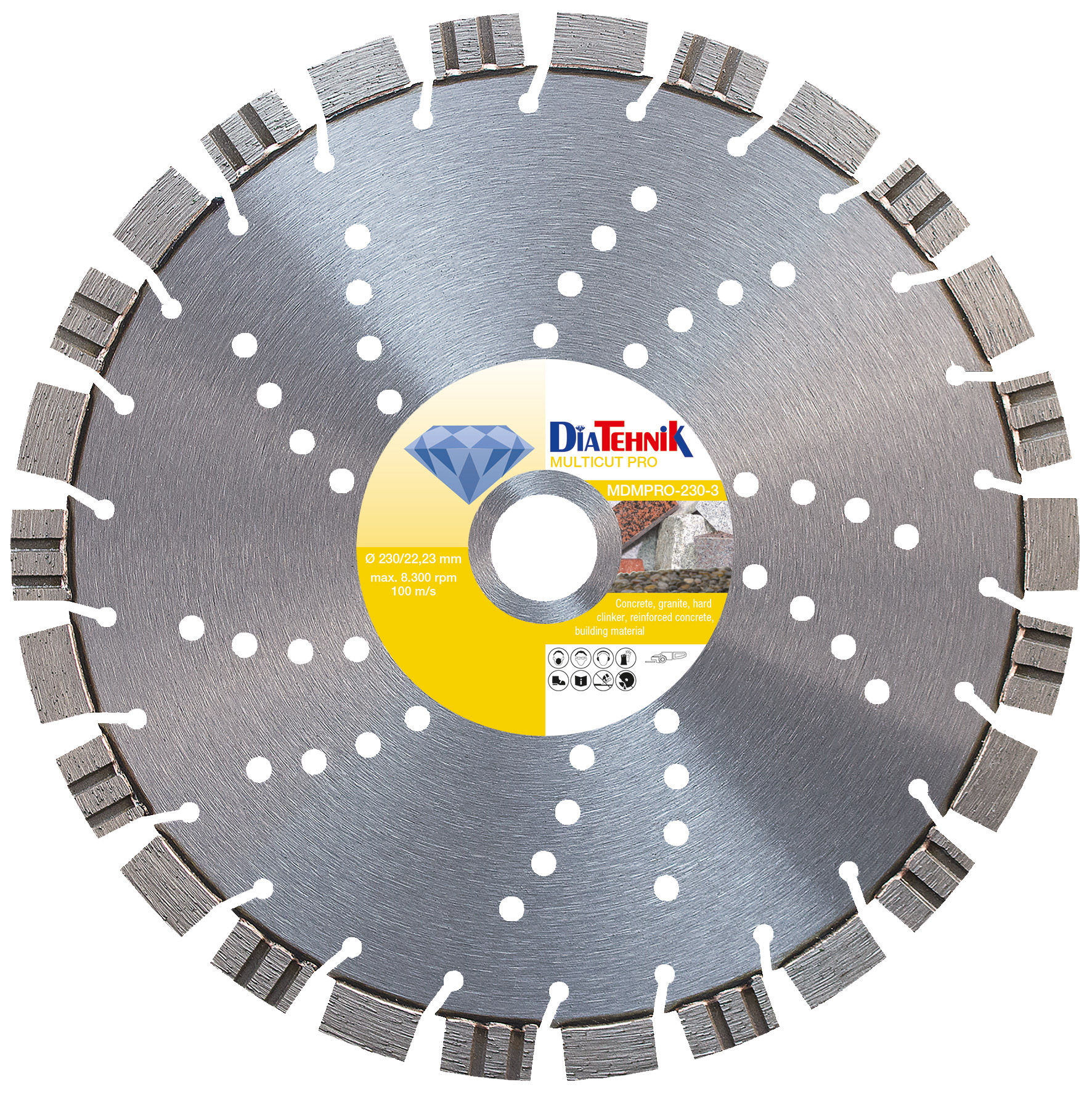 - Discul diamantat DiaTehnik este prevăzut cu fante, ce asigură o răcire rapidă și conferă o durată lungă de viață.