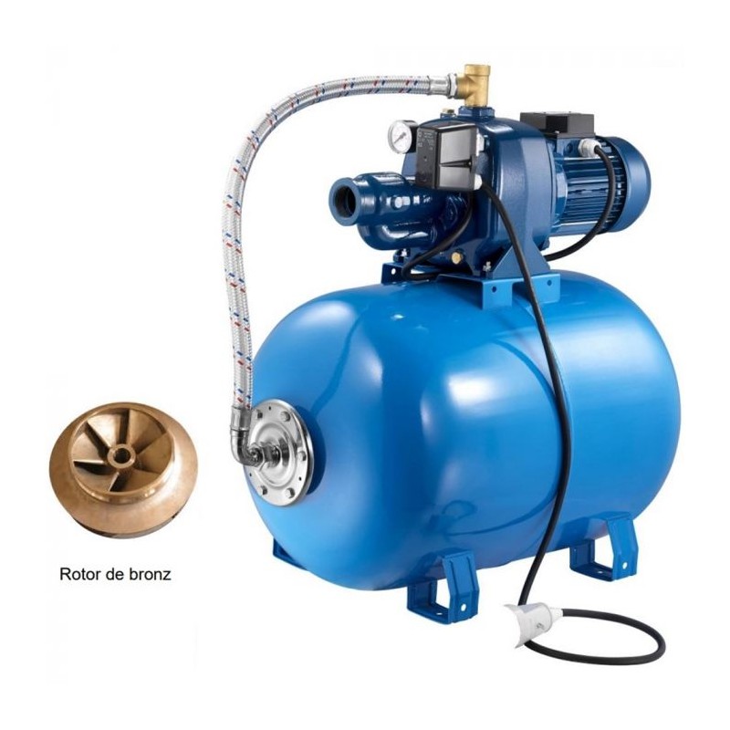 - Sistem de alimentare cu apă, tip hidrofor, cu autoamorsare, echipat cu pompă centrifugală de suprafață cu rotor din bronz.