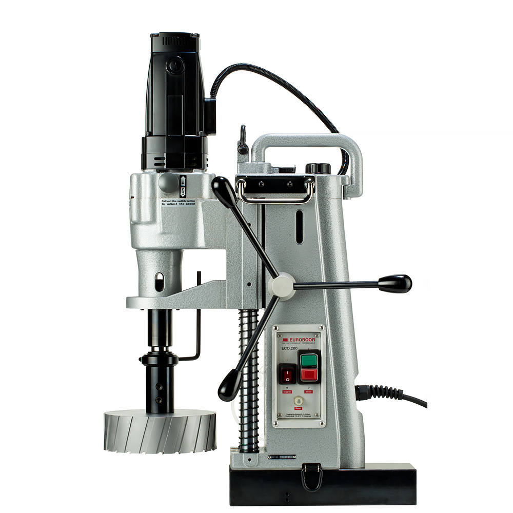 - Mașina de găurit cu motor puternic de 3600 W, forță magnetică 3900 kg și ax Morse Taper 4 asigură o găurire de până la 200 mm;