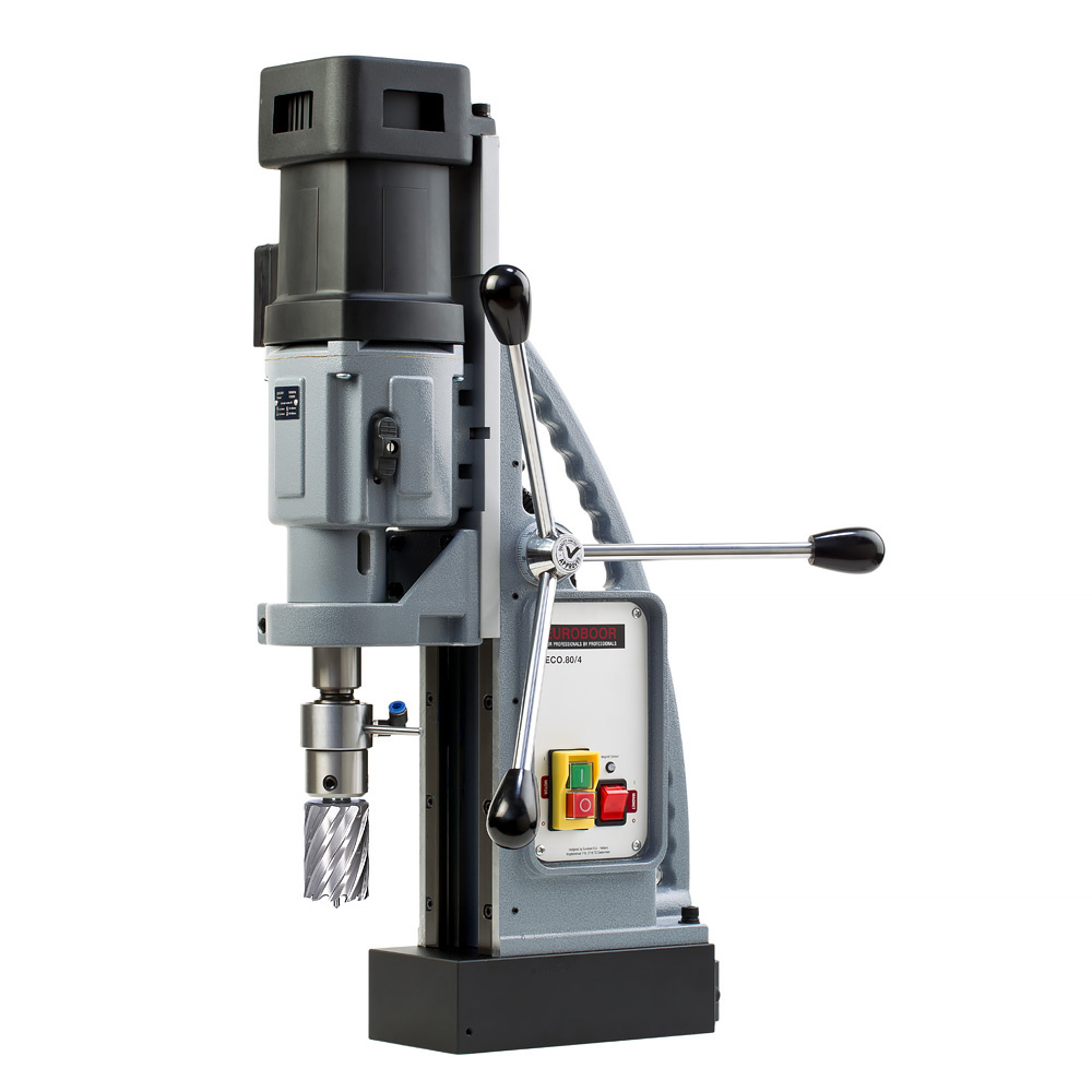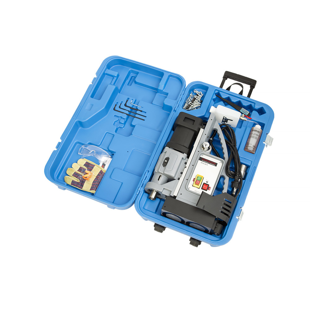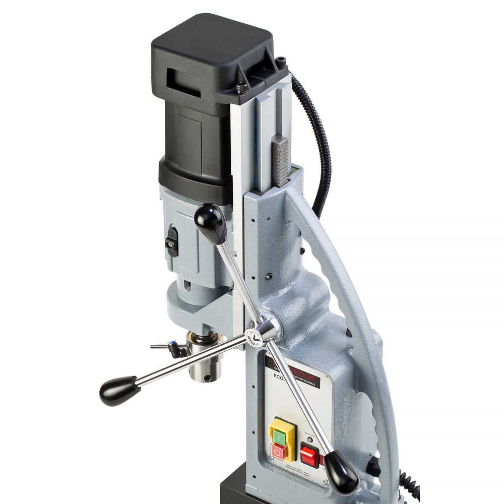 - Datorită cutiei de viteze cu 4 trepte, mașina de găurit portabilă cu talpă magnetică este potrivită pentru abordarea sarcinilor de foraj în miscare, cât și pentru carotele cu diametru mare.