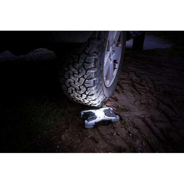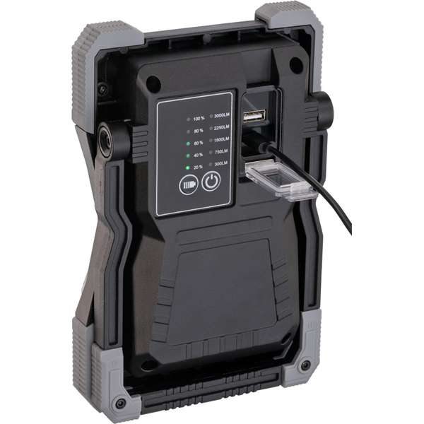 - Proiectorul cu acumulator Rufus 3000 MA cu lumină LED asigură o iluminare puternică în zonele unde nu este conexiune de alimentare;